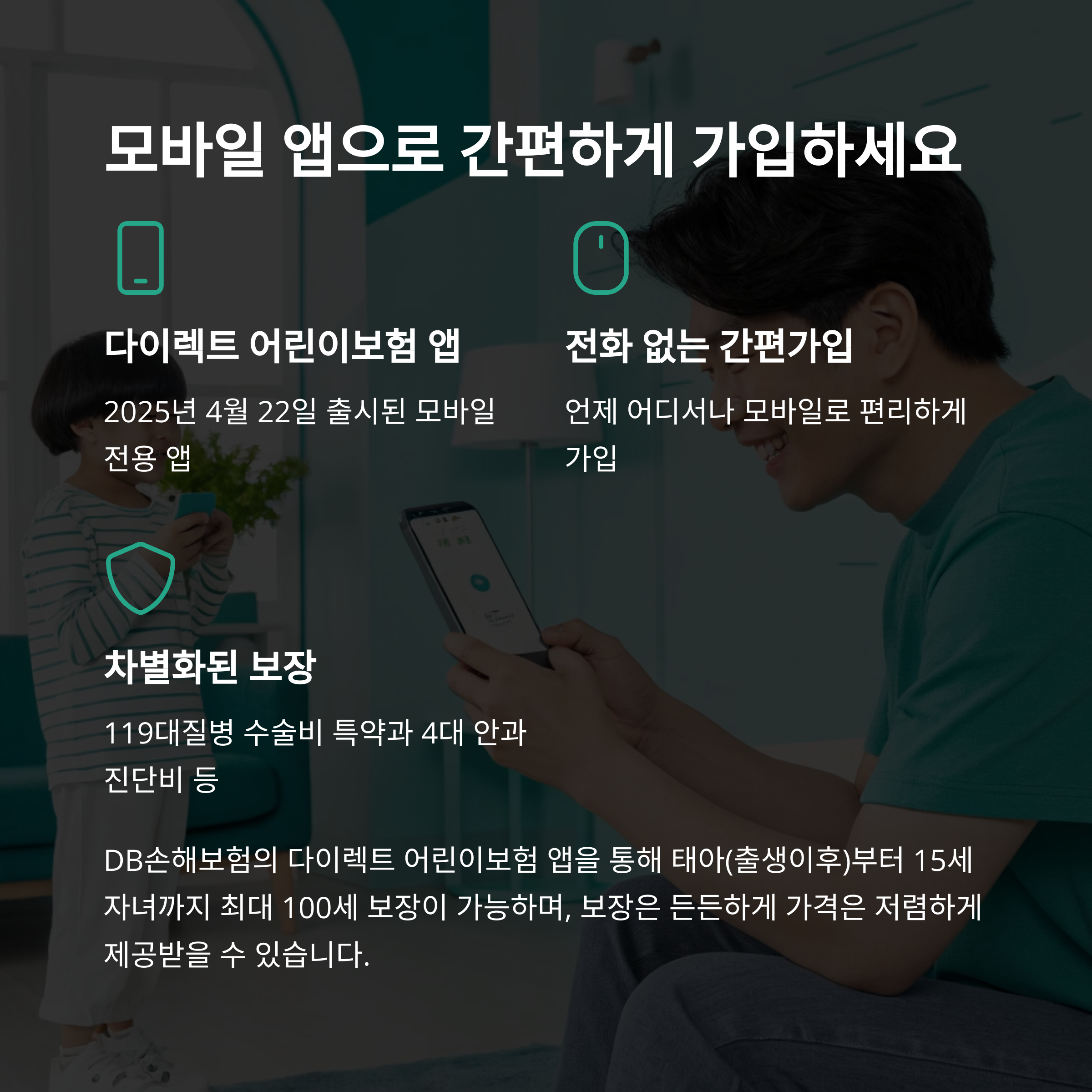 DB손해보험 다이렉트 어린이보험 앱을 통해 전화 없이 간편하게 가입할 수 있습니다.