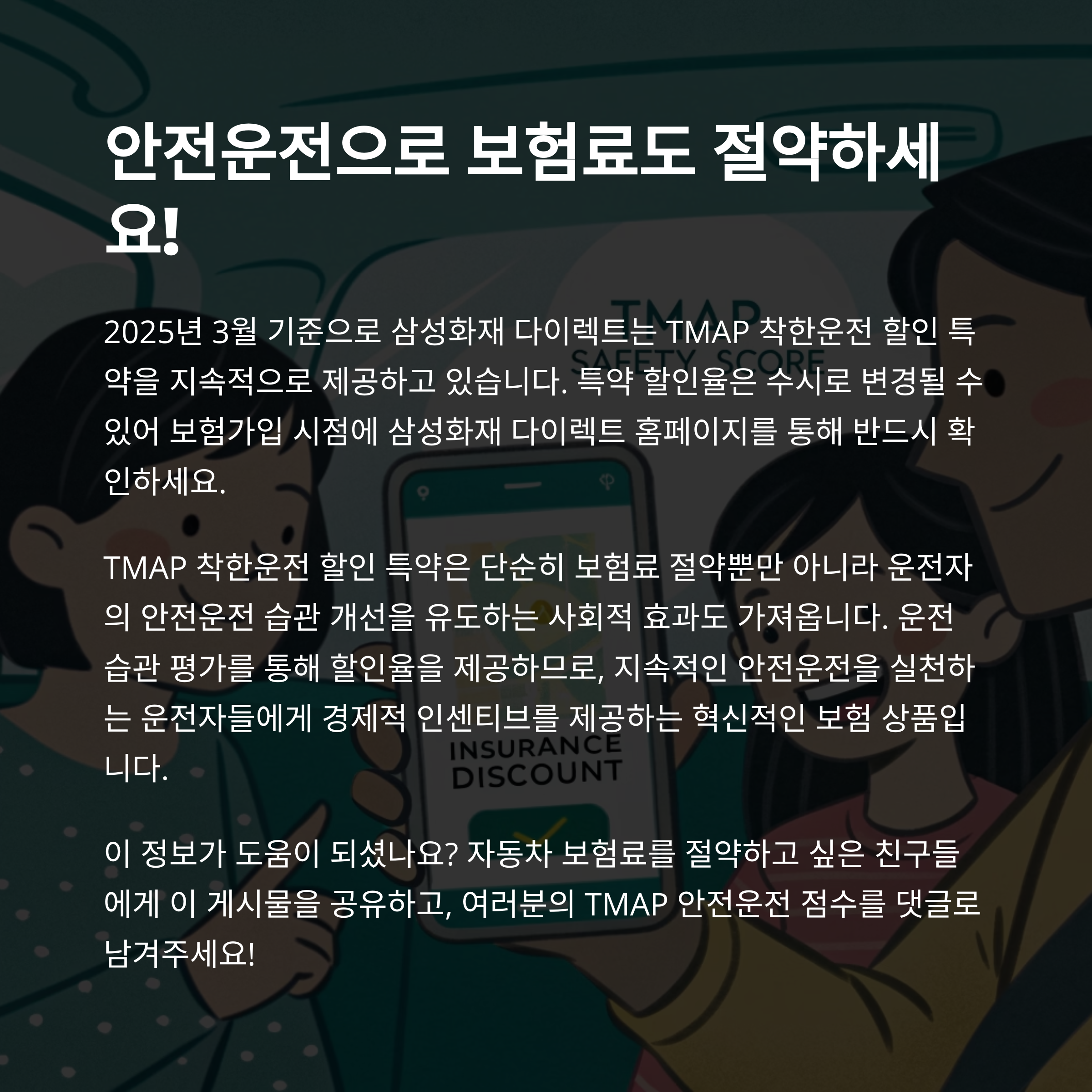 자동차보험, TMAP, 삼성화재, 다이렉트보험, 착한운전, 보험료할인, 안전운전, 보험특약, 마일리지할인, 2025자동차보험