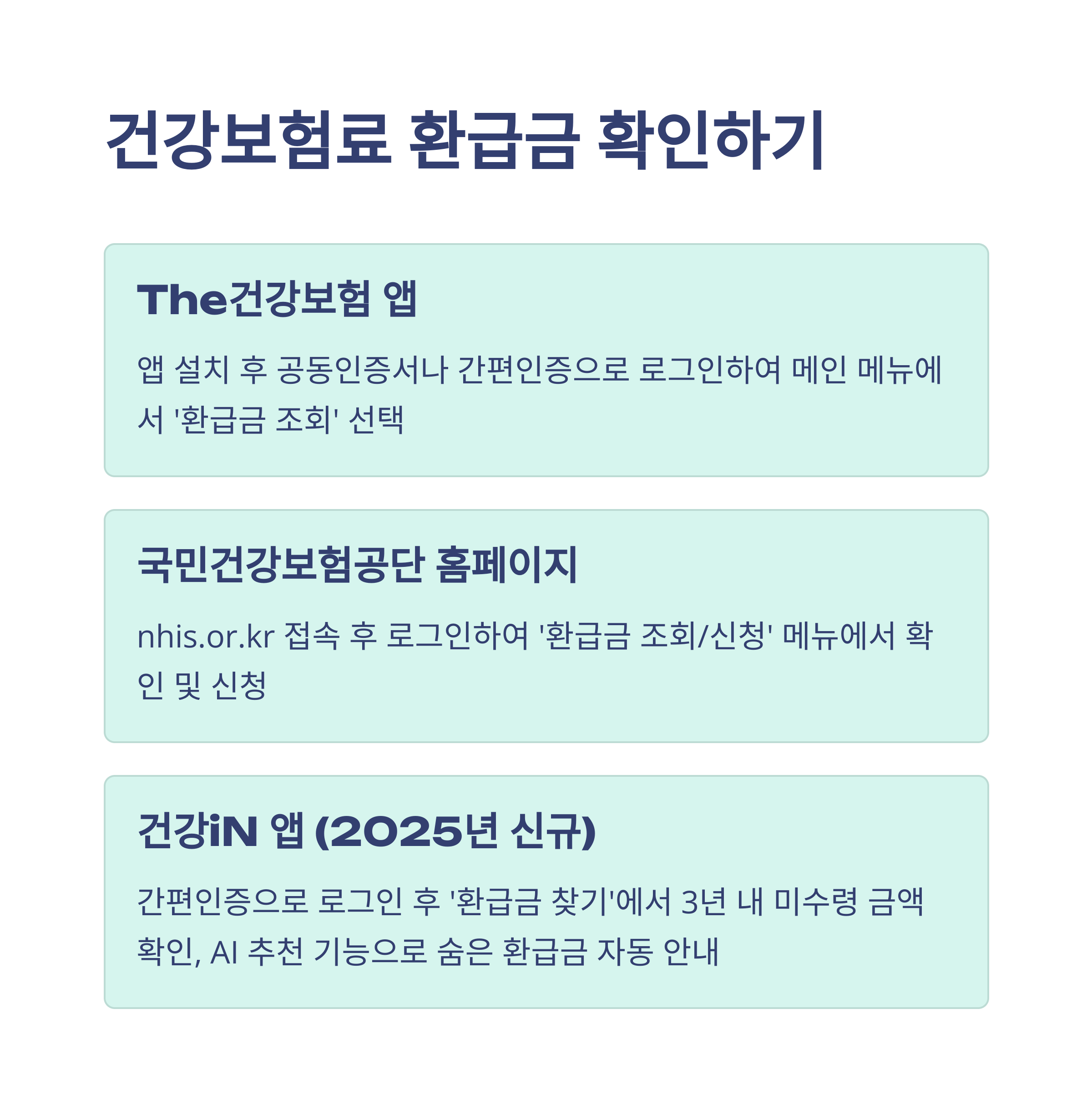 ‘The건강보험’ 또는 ‘건강iN’ 앱을 통해 간편 인증 후 '환급금 조회' 메뉴에서 확인 가능합니다.