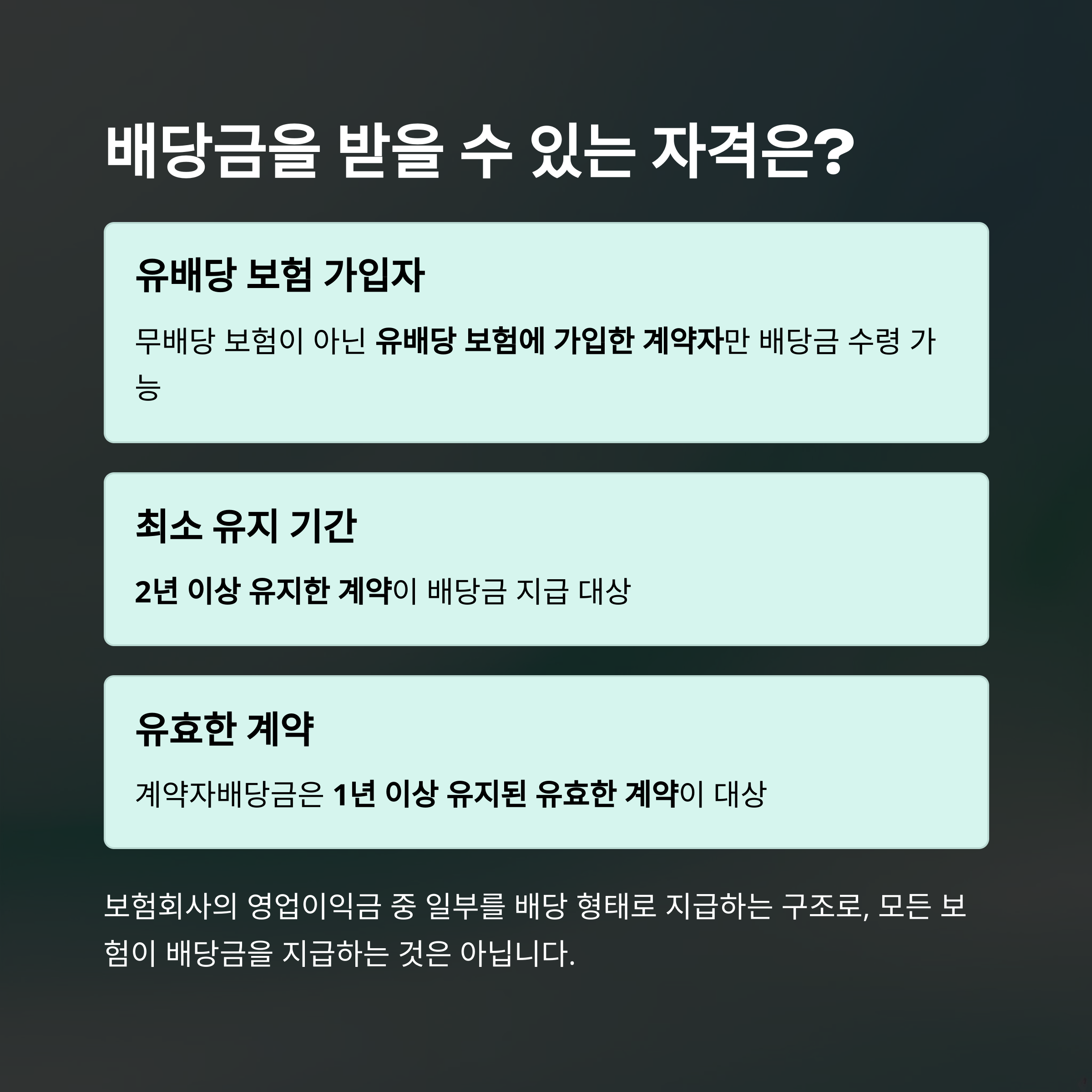 보험 배당금은 모든 가입자에게 지급되는 건 아니에요. 반드시 유배당 상품에 가입되어 있어야 하고, 2년 이상 유지된 계약일 때 지급 자격이 생깁니다. 특히 계약자배당금은 1년 이상 유지된 계약이어야 가능하죠. 무배당 보험은 아무리 오래 유지해도 해당이 없으니, 가입 시 꼭 확인해보셔야 해요.