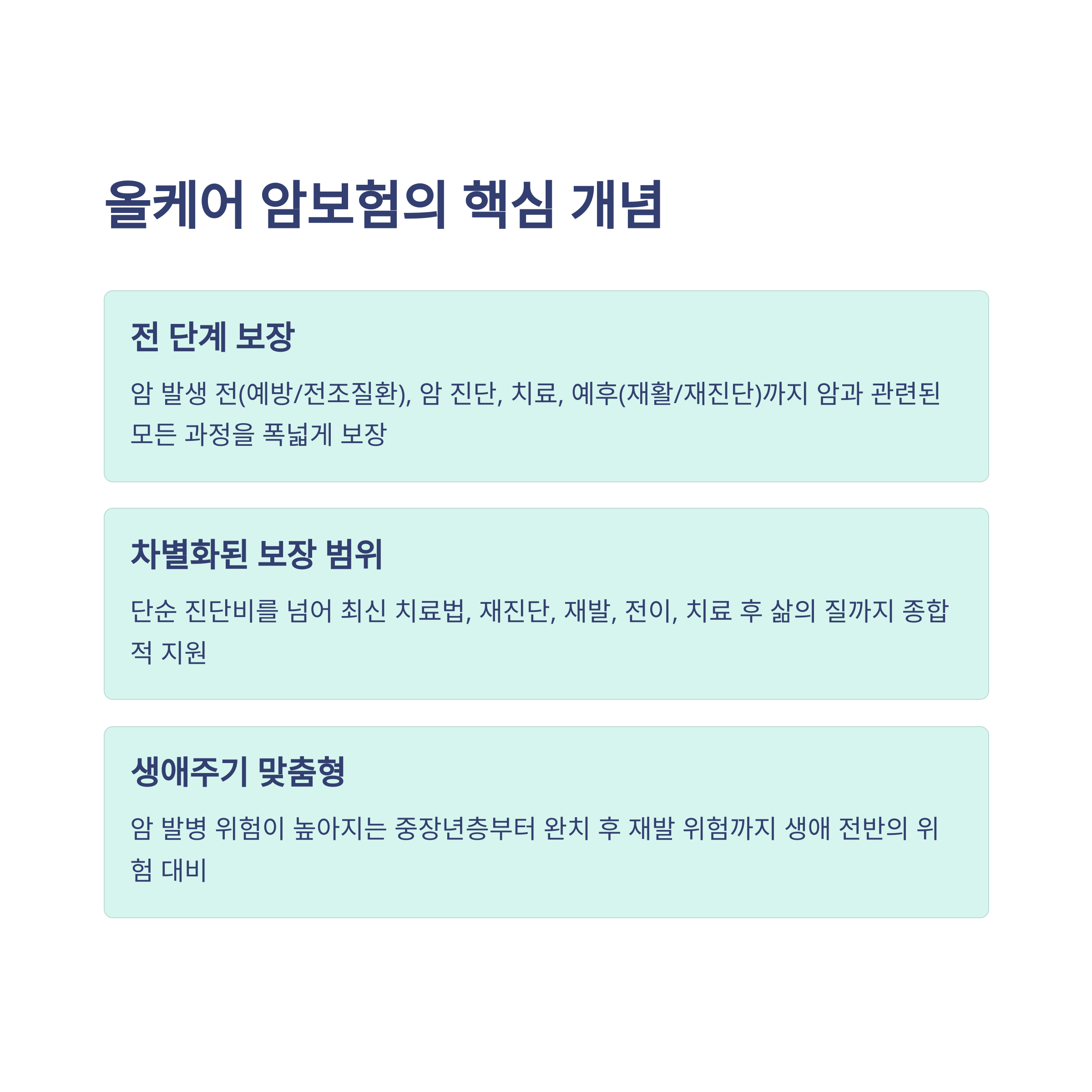 솔직히 말하면, ‘암보험’ 하면 그냥 진단비 받는 게 전부인 줄 알았어요. 근데 요즘은 ‘올케어’라는 말이 붙으면 얘기가 완전히 달라집니다. 올케어 암보험은 암 발생 전의 전조질환부터 진단, 치료, 예후 관리, 심지어 가사도우미 서비스까지 포함하는, 말 그대로 암 환자 전 생애를 케어하는 보험이에요.