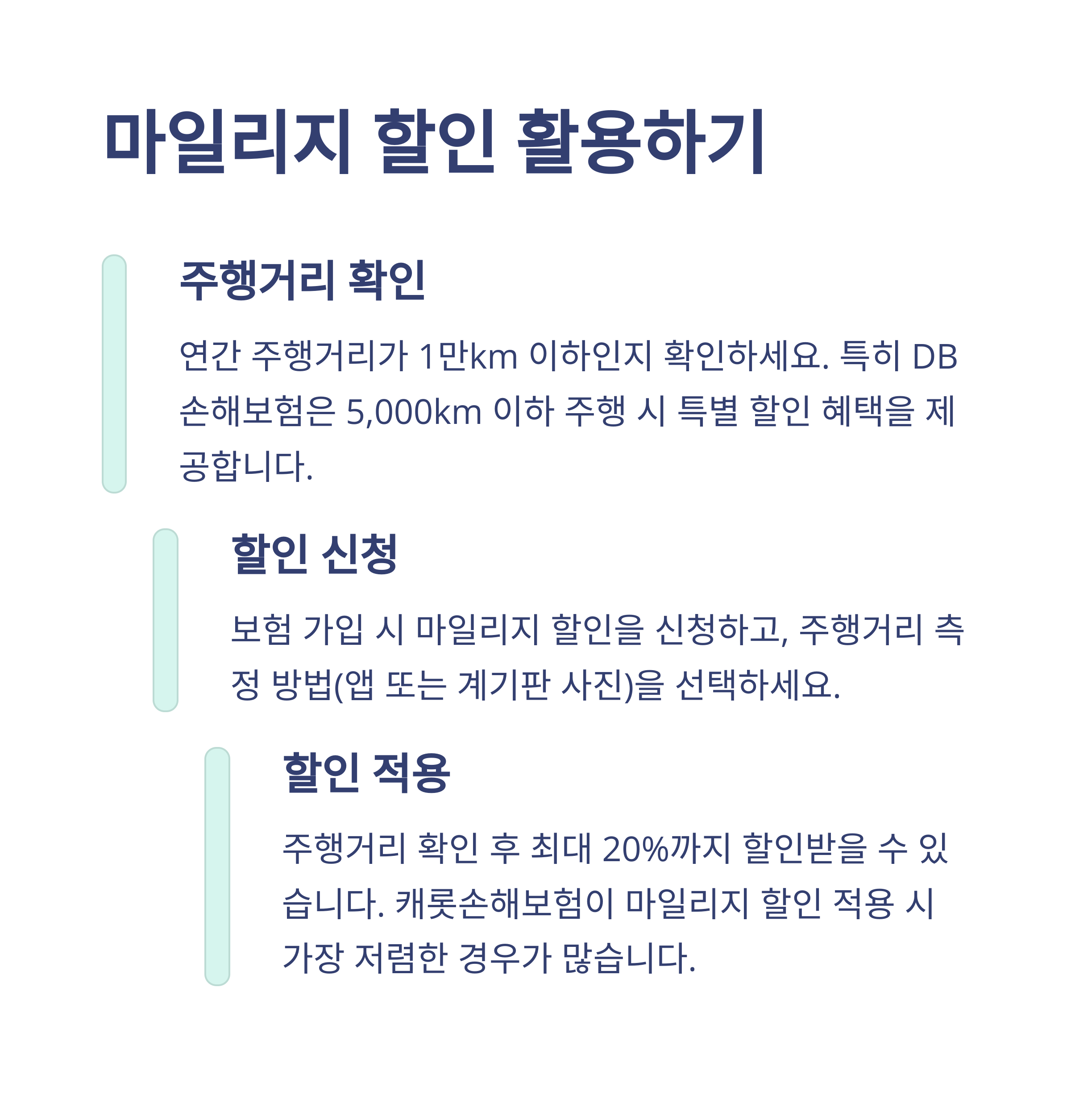 - 마일리지 할인: 1만km 이하 운행자는 최대 20% 할인!