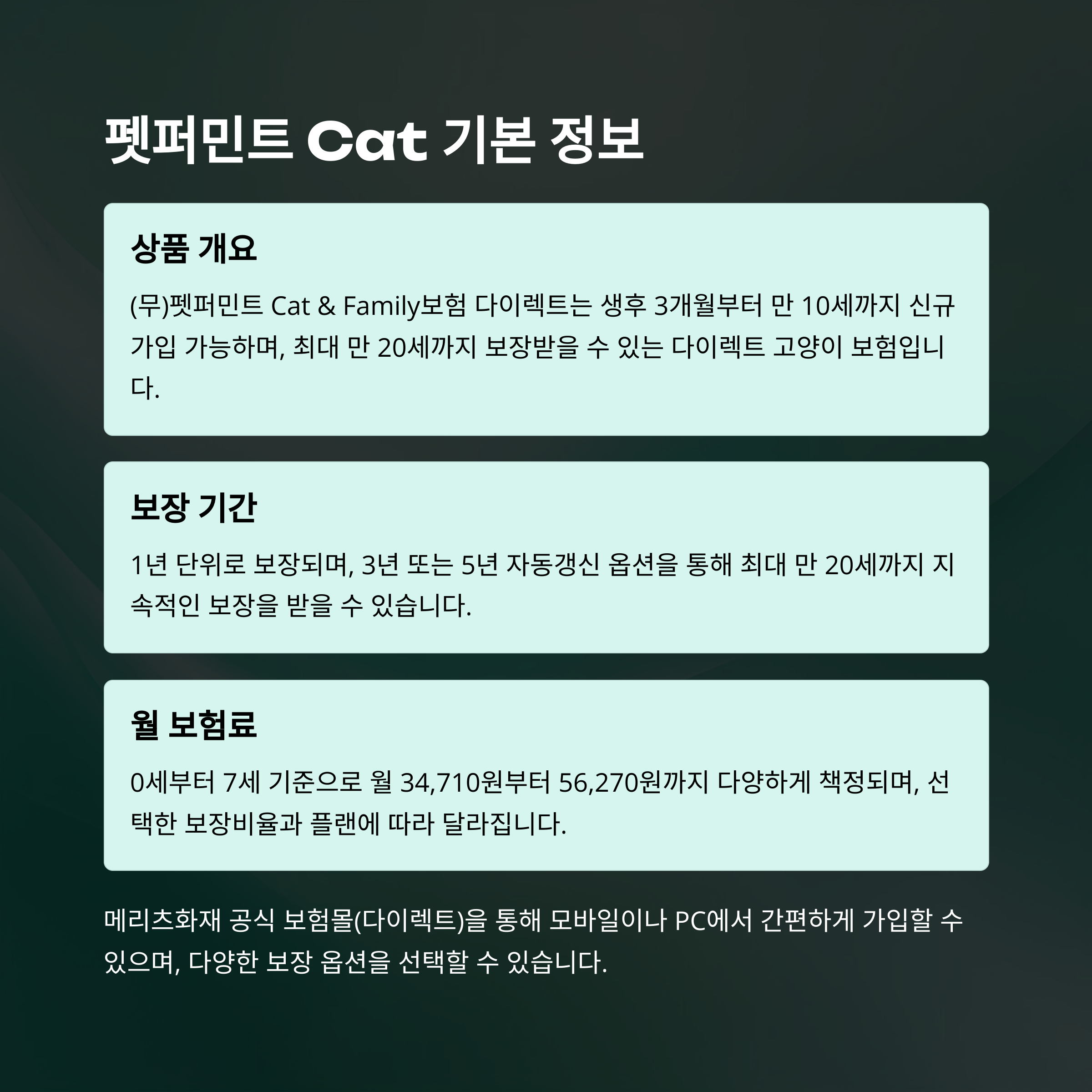 펫보험,고양이보험,메리츠화재,펫퍼민트,펫퍼민트Cat,동물병원보험,반려묘보험,고양이실손보험,고양이수술비,펫다이렉트보험