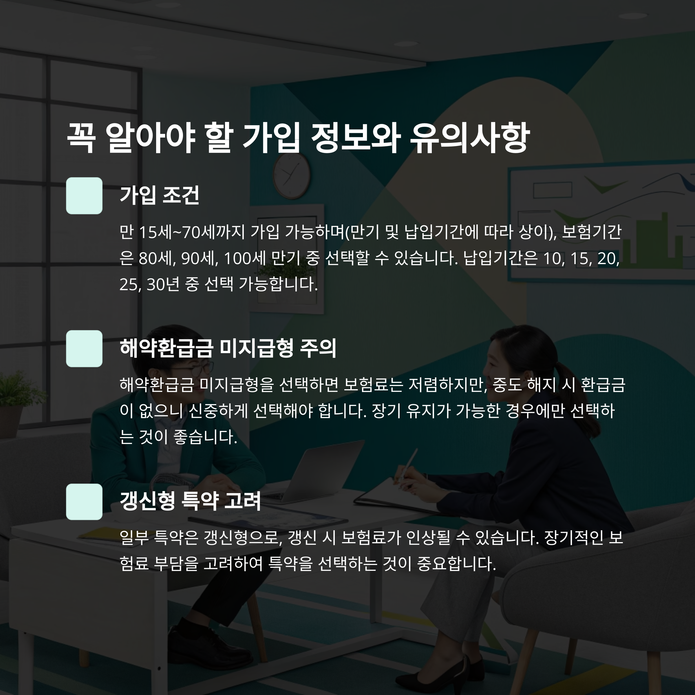 보험료는 저렴하지만, 해지 시 환급금이 없으므로 장기 유지가 가능할 때만 추천됩니다.