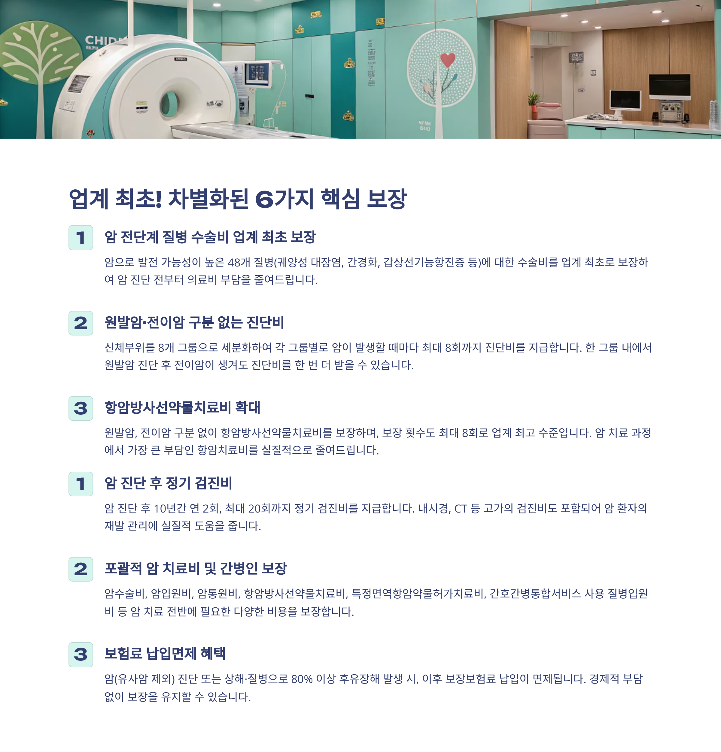 암 치료에서 가장 고비는 항암치료죠. 약값도 비싸고 부작용도 심하니까요. 그런데 이 보험은 항암방사선약물치료비도 원발암, 전이암 구분 없이 최대 8회까지 보장해줍니다. 특히 고가의 특정면역항암약물치료까지 포함된 게 인상 깊었어요. 실제 항암치료는 한 번으로 끝나지 않거든요.