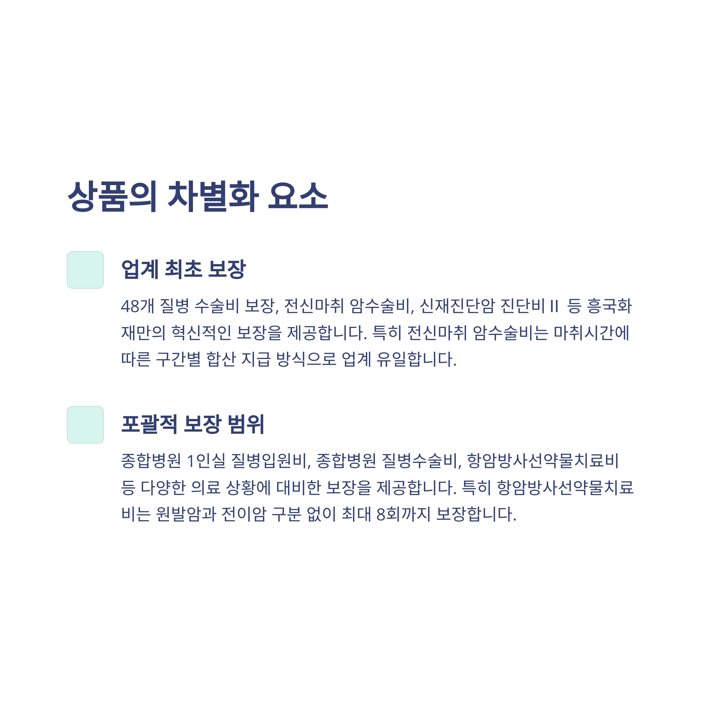 - 48개 질병 수술비, 전신마취 수술비 등 특화 보장을 희망하는 분