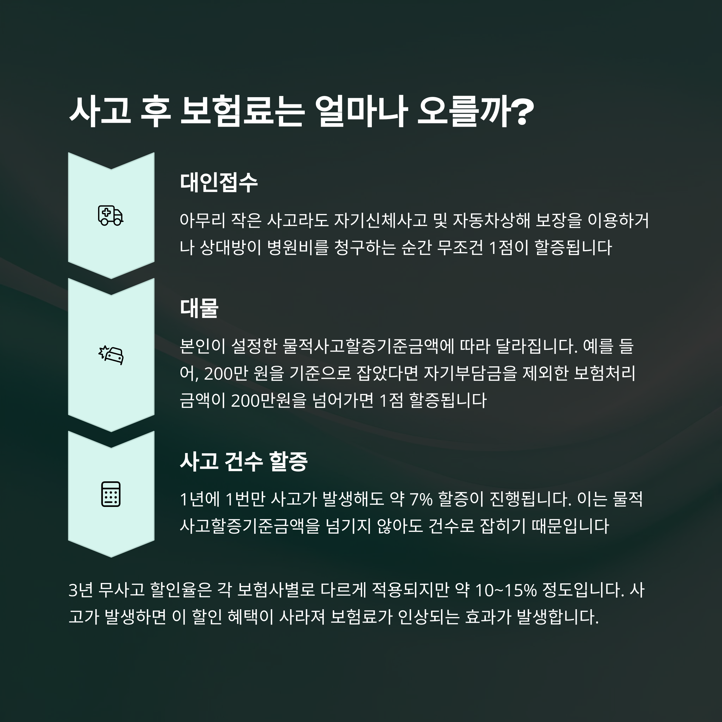| 대인 사고 | 병원 접수 시 1점 무조건 할증 |