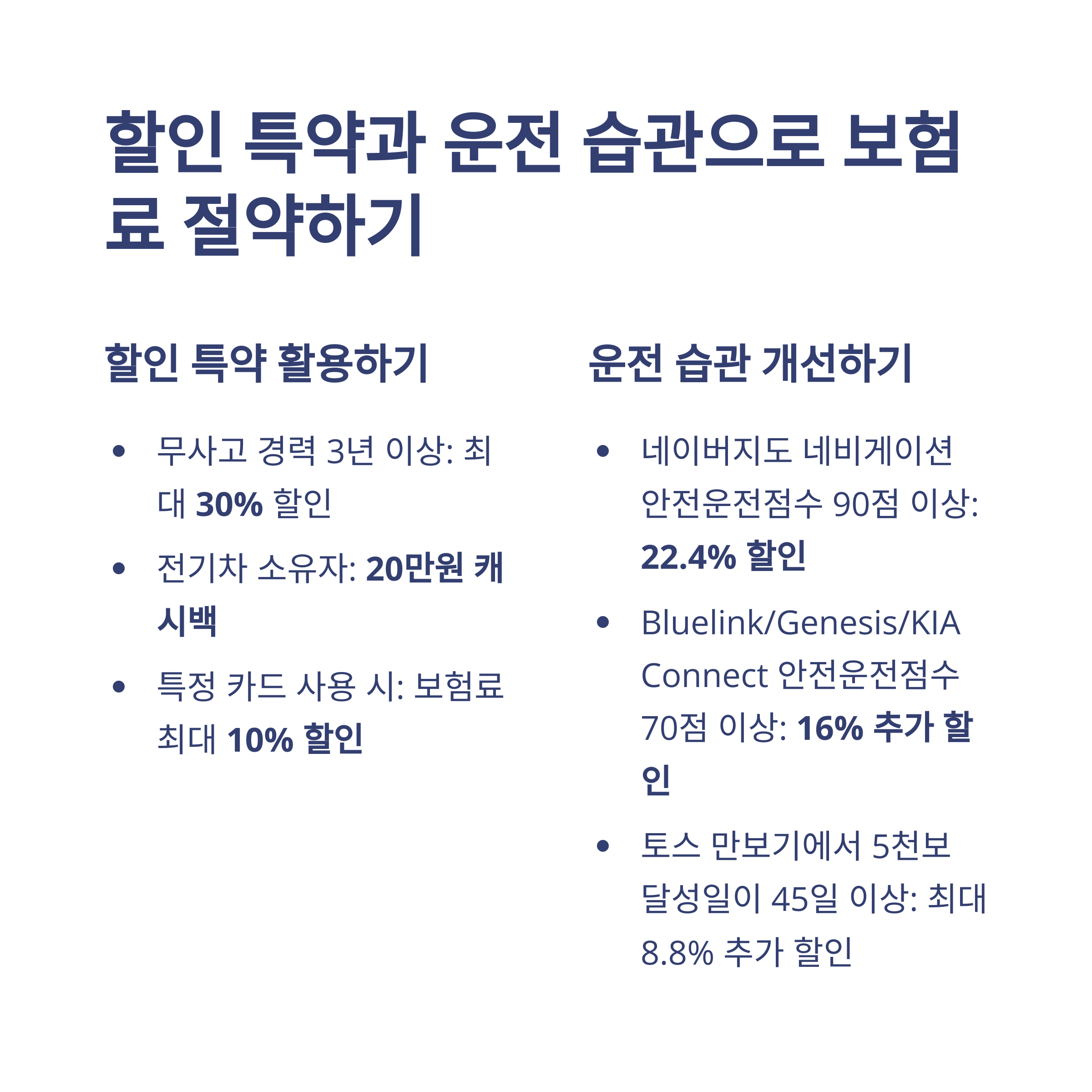 - 무사고 경력 3년 이상: 최대 30% 할인 적용
