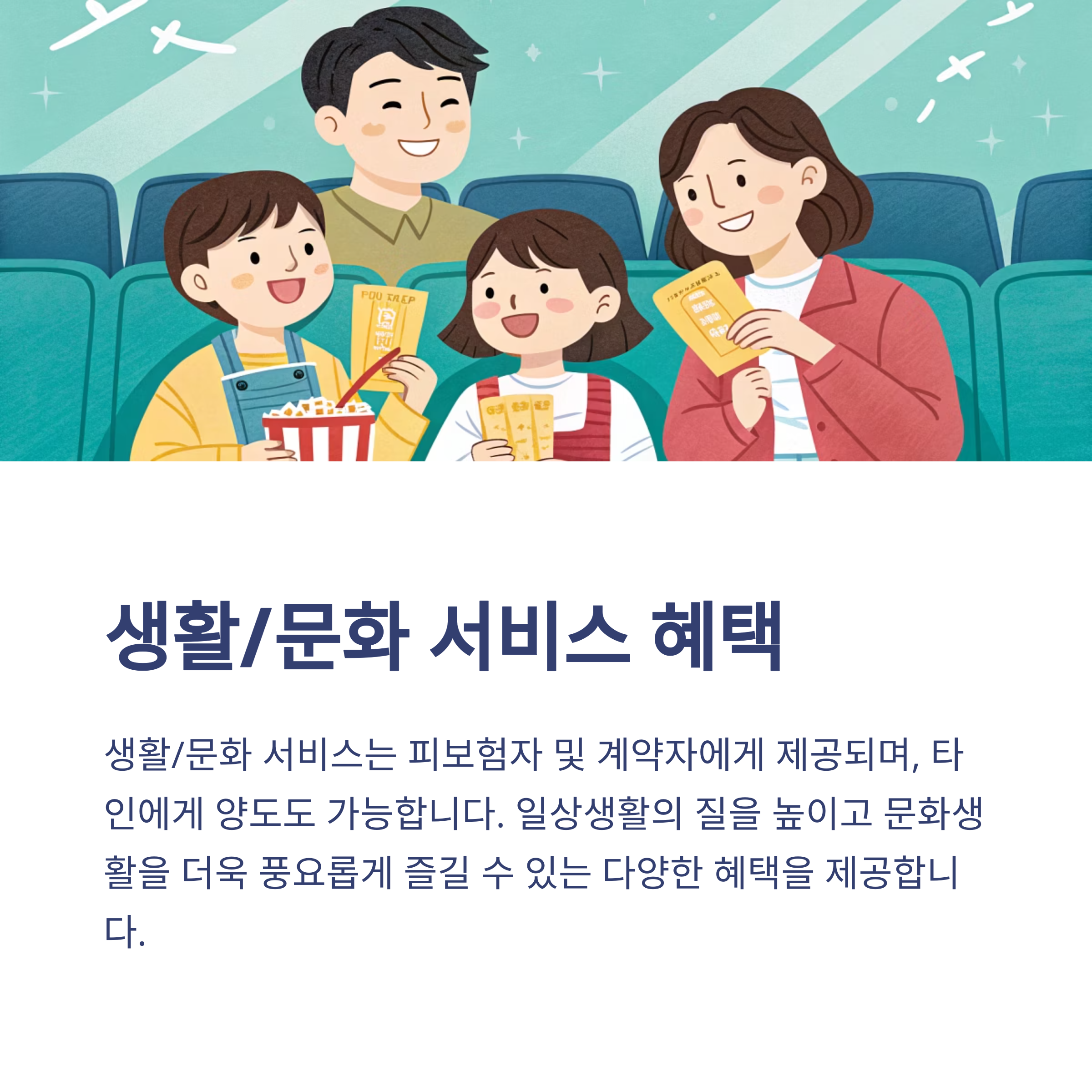 생활/문화 서비스는 피보험자뿐 아니라 계약자도 이용할 수 있으며, 타인에게 양도도 가능합니다.