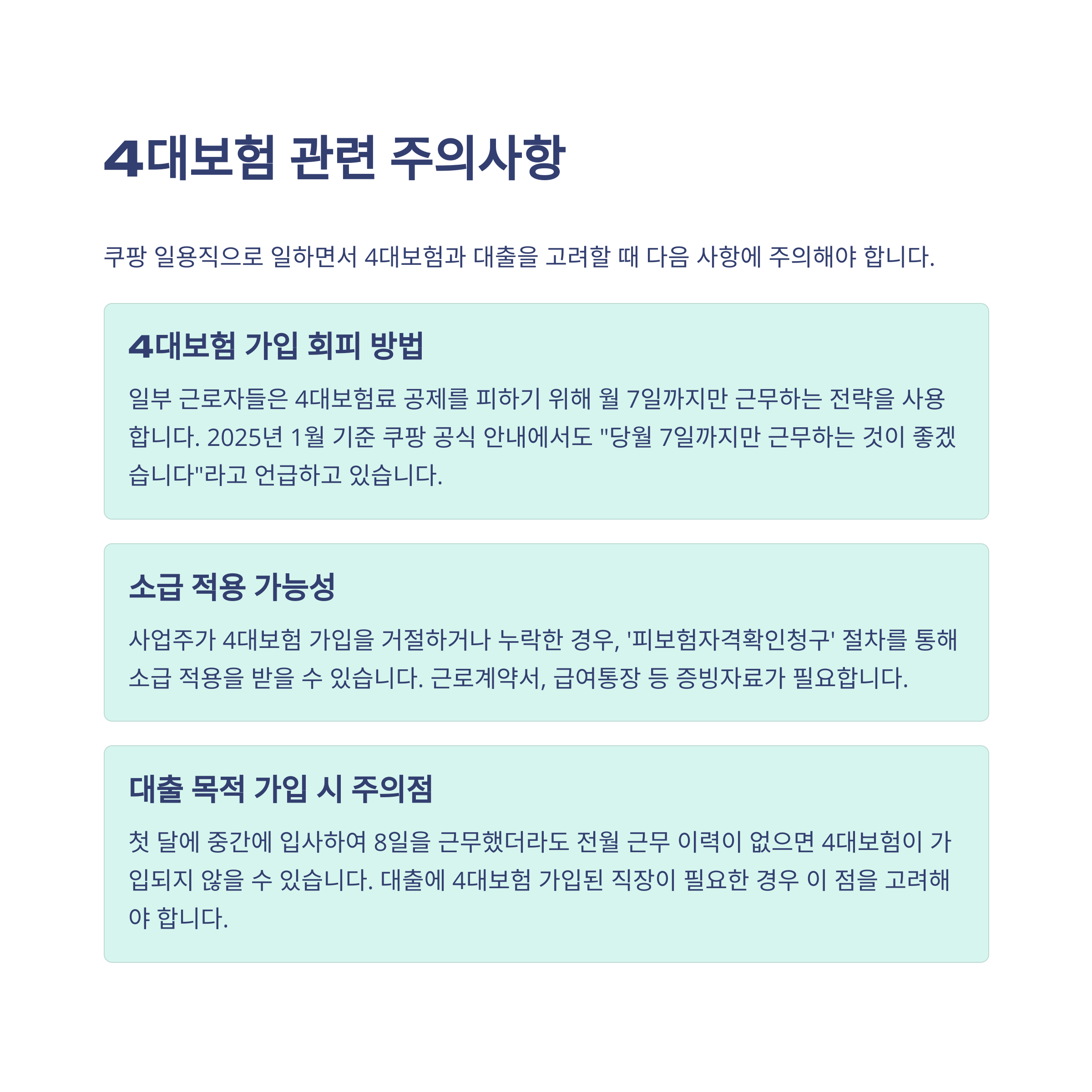 2025년 쿠팡 일용직 4대보험과 대출, 진짜 중요한 이야기