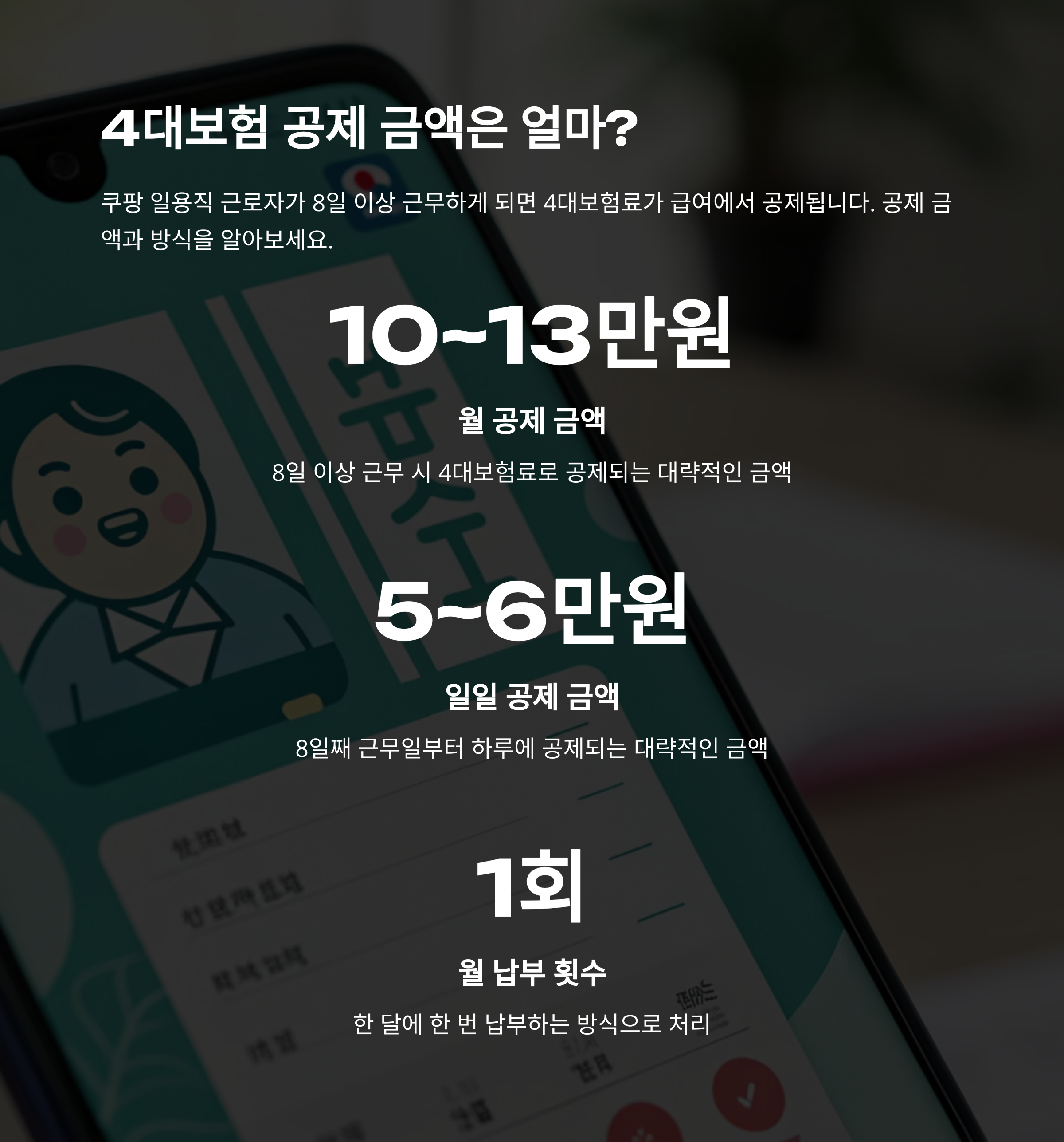 태그: 쿠팡일용직, 4대보험, 국민연금, 건강보험, 고용보험, 산재보험, 일용직대출, 햇살론, 비상금대출, 쿠팡급여
