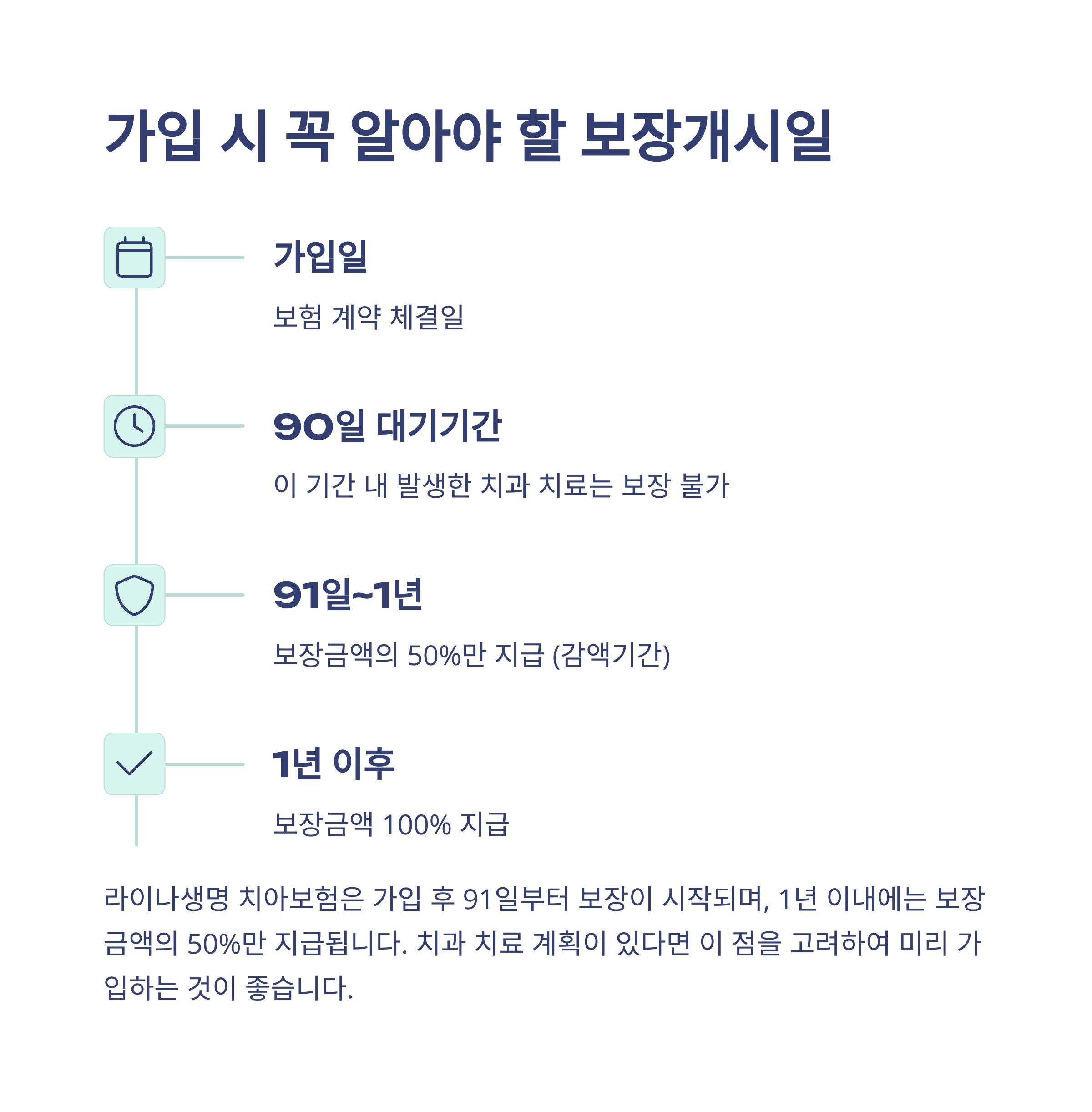 보장개시는 가입일로부터 91일 이후부터 시작되며, 이 기간 이전에 치료받은 경우 보험금이 지급되지 않습니다.