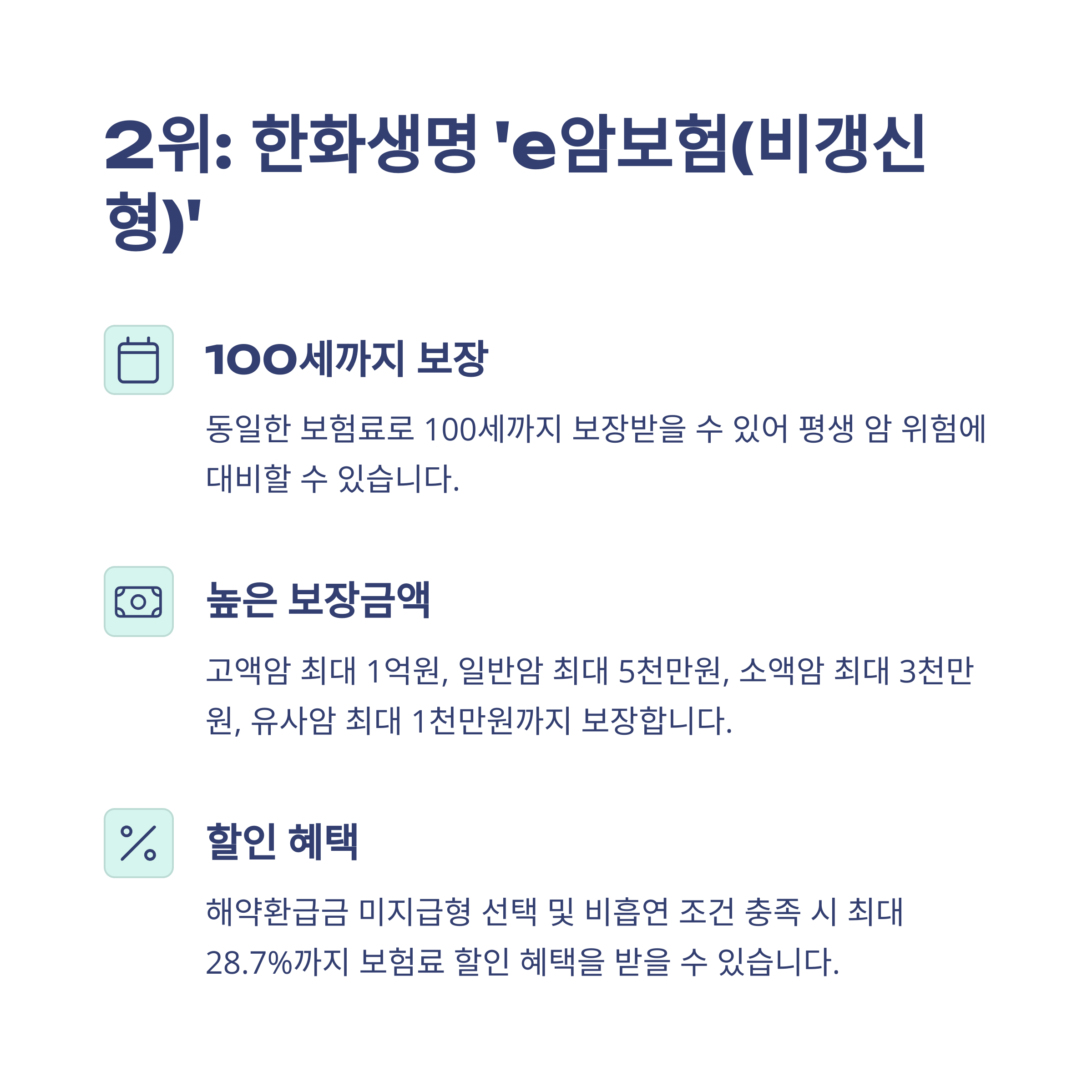 - 한화생명 e암보험: 고액암 최대 1억, 비흡연자 보험료 최대 28.7% 할인