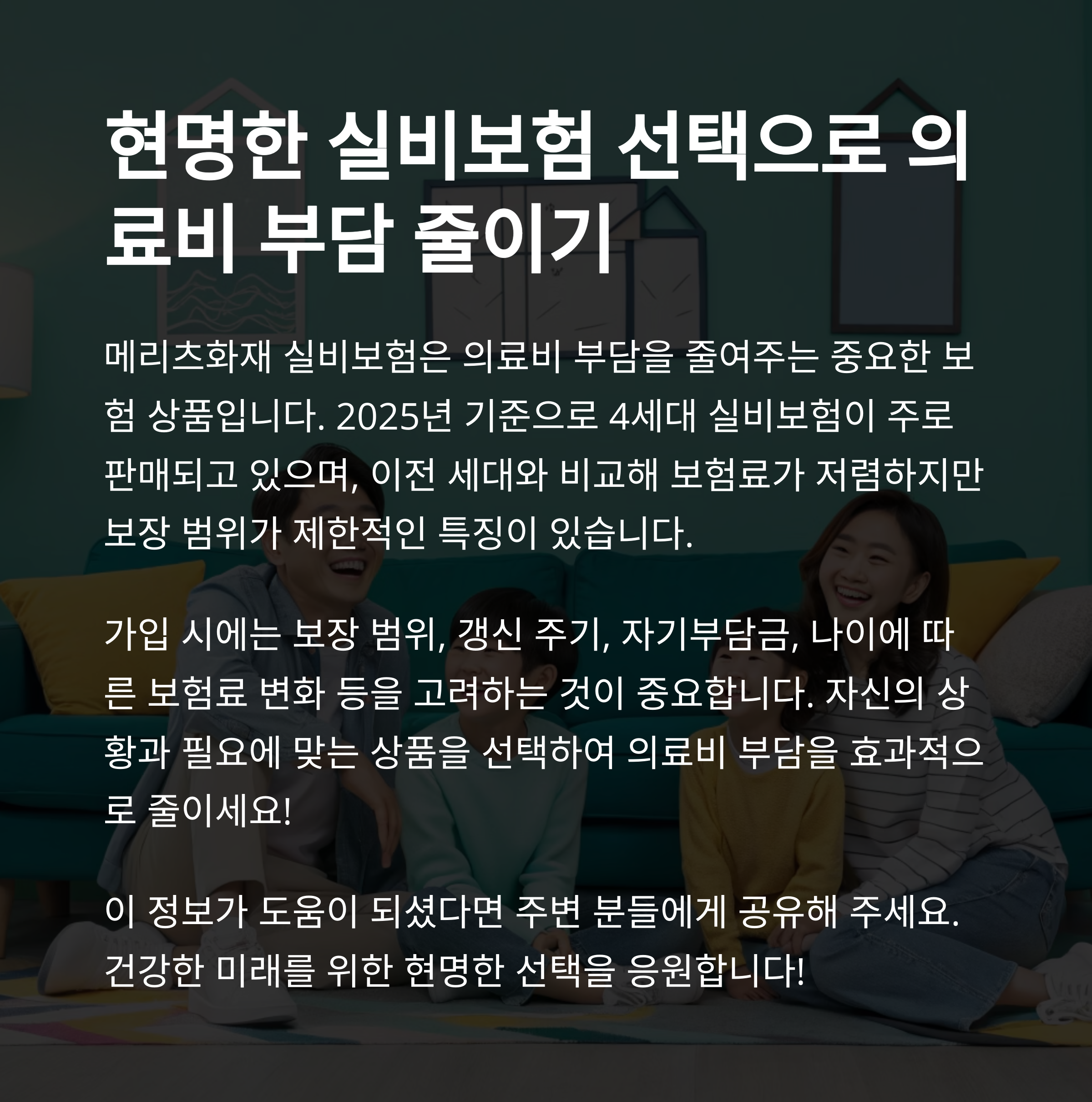 2025년에도 여전히 고민되시나요? 의료비 걱정 덜고 싶은 당신, 메리츠화재 실비보험으로 실속 있게 대비하세요!