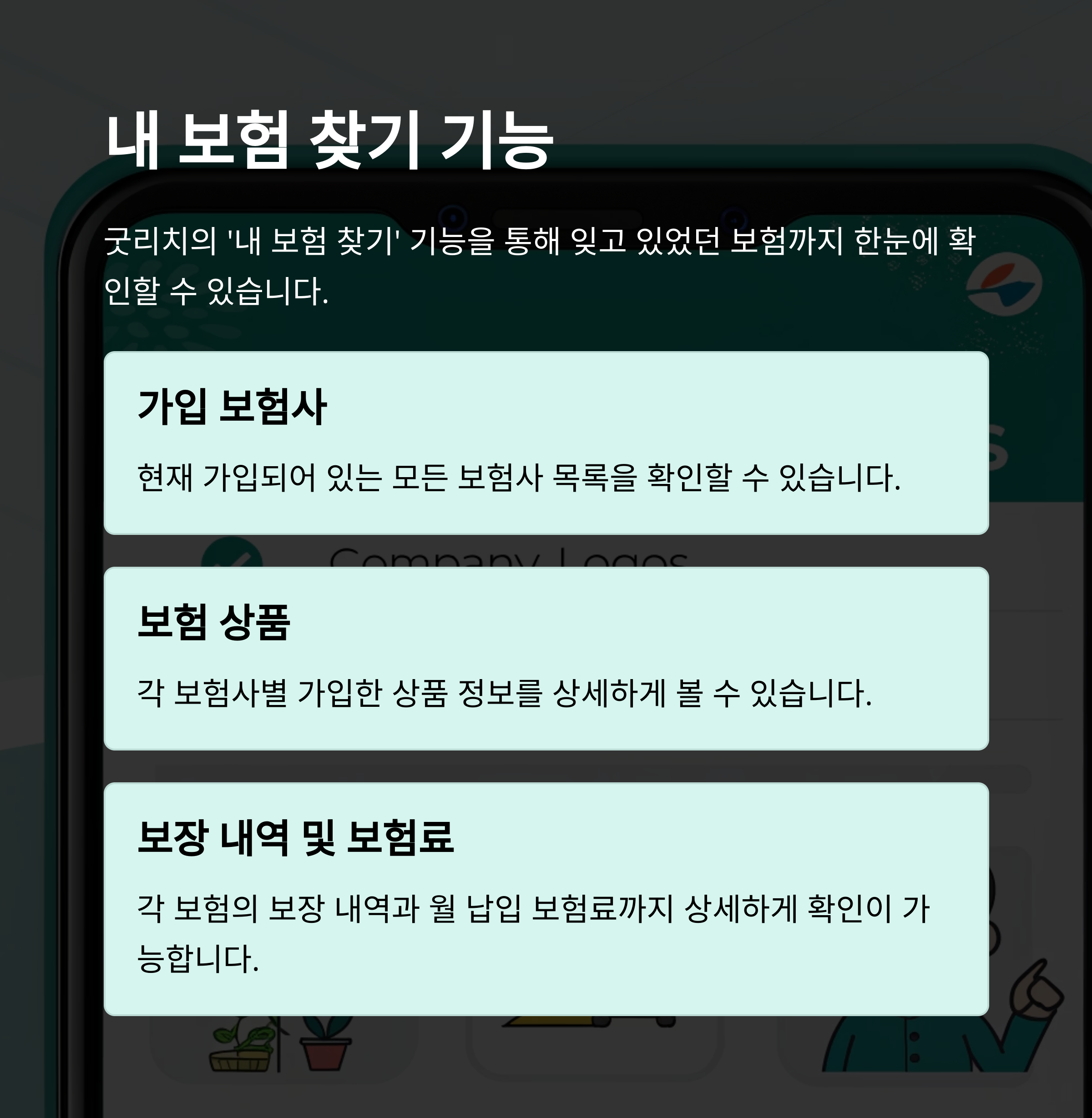 | 내 보험 찾기 | 기존 가입한 보험 내역 자동 조회 |