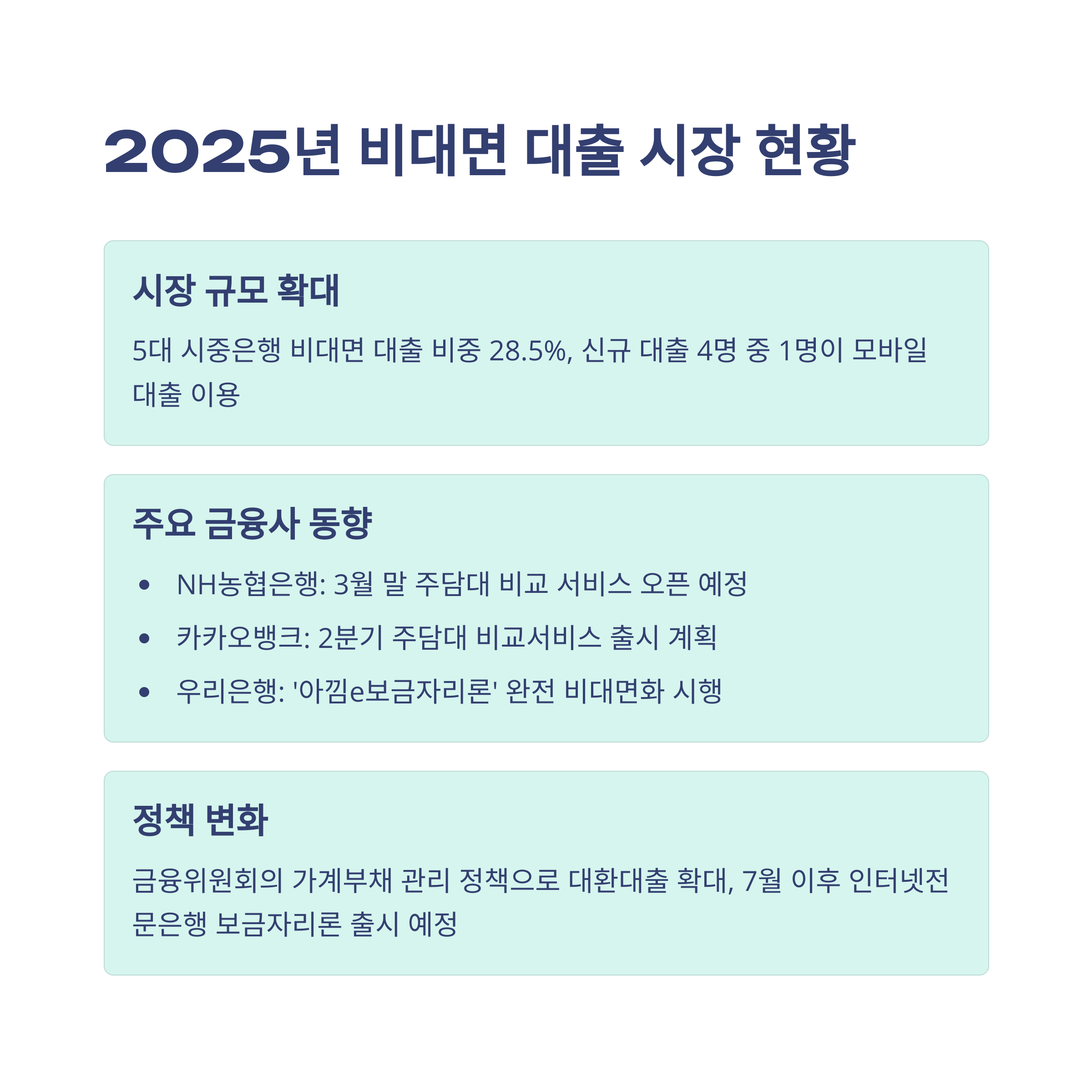 2025년, 비대면 대출 시장은 진화를 넘어 혁신 중입니다. 지난해까지만 해도 신용대출에 국한되던 비교 서비스가 주택담보대출까지 확대되면서 플랫폼 중심 경쟁이 격화되고 있어요. 특히 NH농협, 카카오뱅크, 우리은행 등은 앞다퉈 신규 기능을 출시하고 있죠.