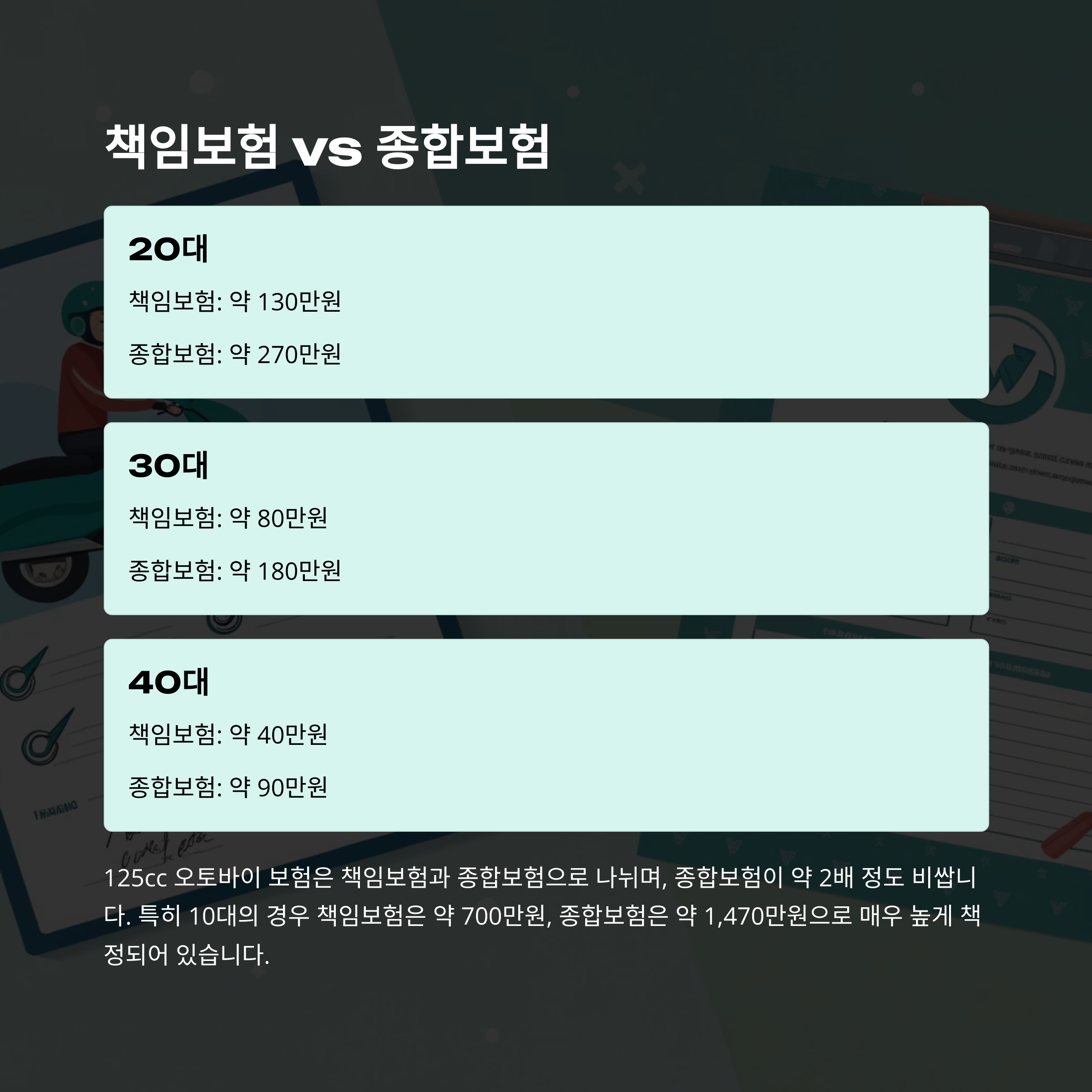 125cc 오토바이, 오토바이 보험료, 2025 보험 비교, 책임보험, 종합보험, 유상운송 보험, 다이렉트 보험, 무사고 할인, 보험료 절약, 오토바이 유지비