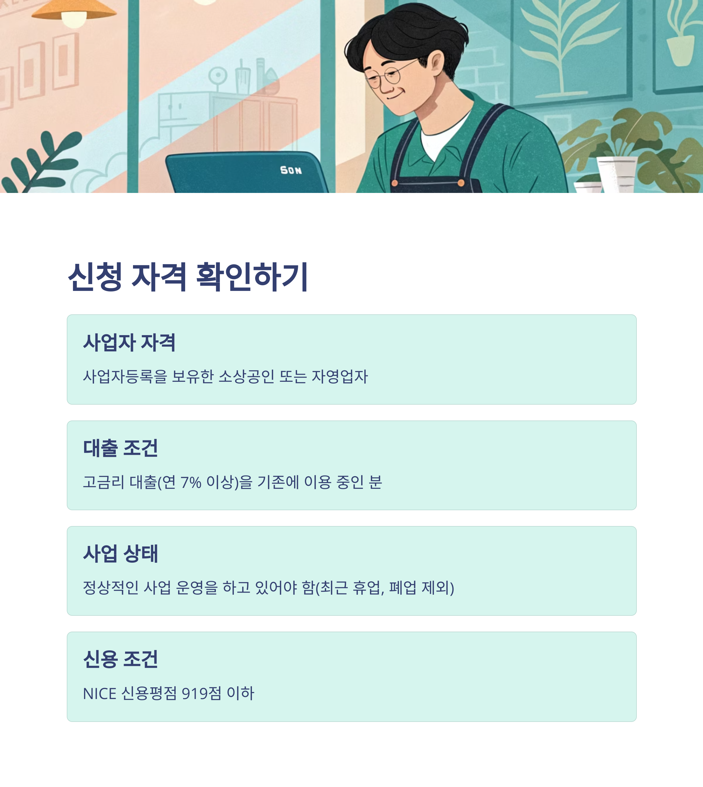 Tags: 소상공인대출, 대환대출, 저금리전환, 자영업자금융, 정부지원대출, 중소기업정책, 금융정책, 재정지원, 신용회복, 2025대출정보